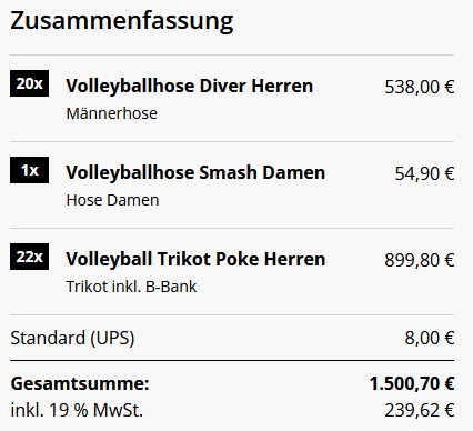 • Es sind also Gesamtkosten von 1.500,70 Euro angefallen, die ich bereits per PayPal bezahlt habe.